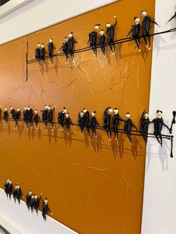 In my work, acrylic paints flow together to form a mesh of surrealism, figurative elements and geometric clarity. The composition is an ode to freedom and the dynamism of life. Every line, every splash of color is carefully placed to create an atmosphere of weightlessness and connection that captures viewers in a web of emotion and reflection. This painting will exude an aura of thoughtfulness and creative energy in your space.