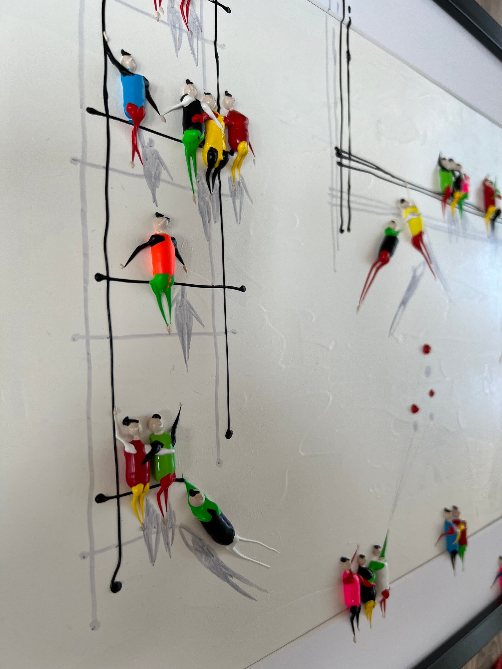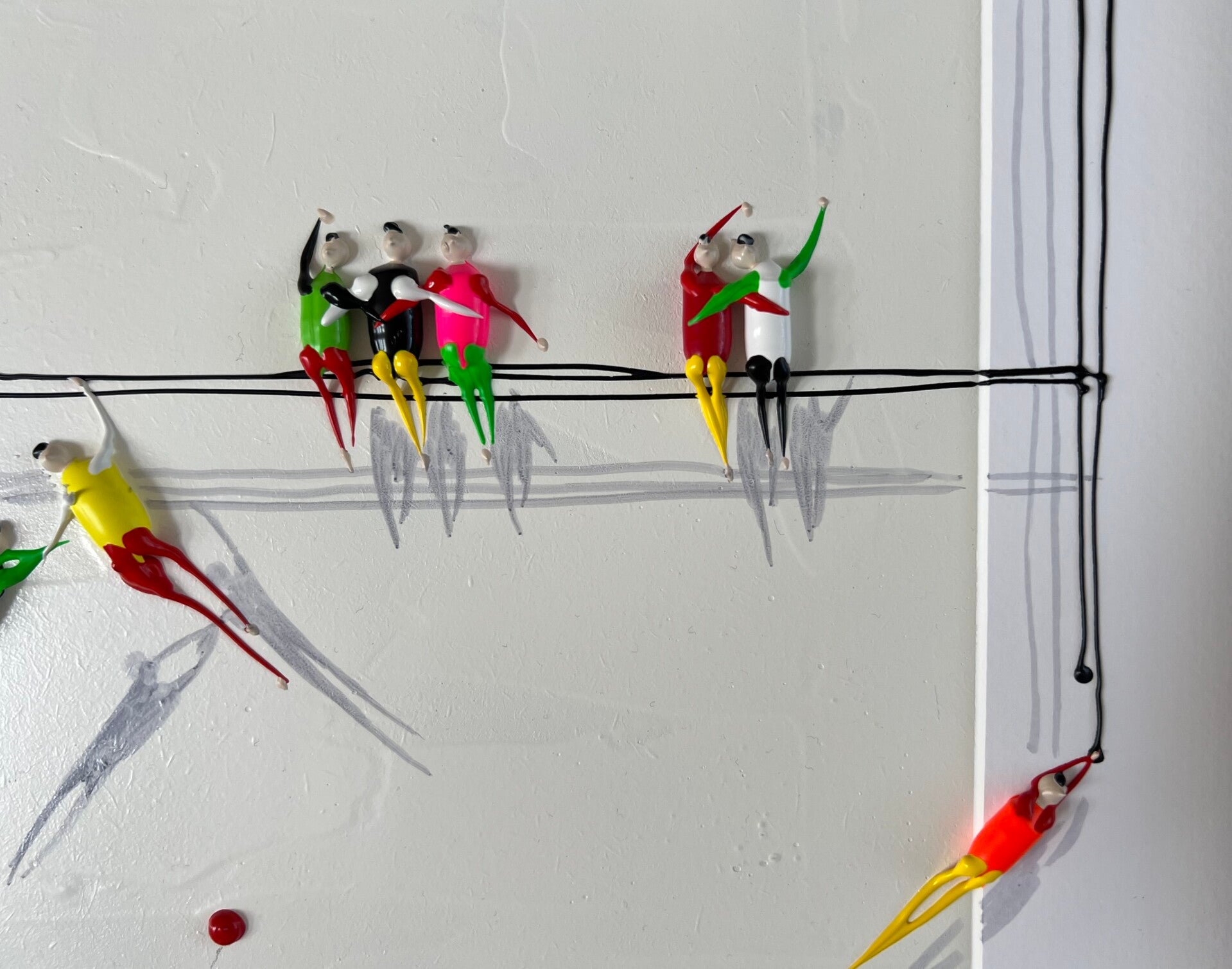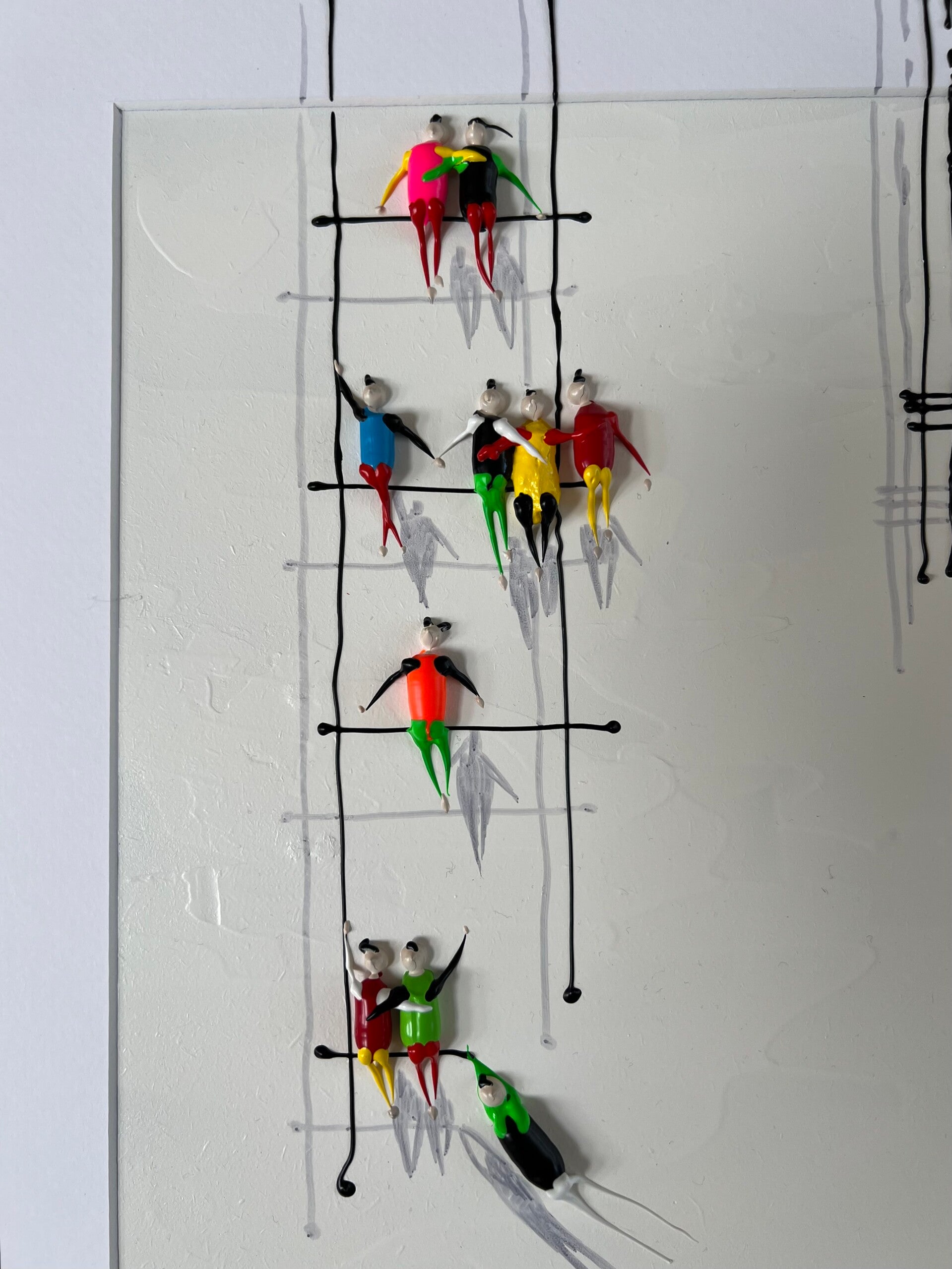 In my work, acrylic paints flow together to form a mesh of surrealism, figurative elements and geometric clarity. The composition is an ode to freedom and the dynamism of life. Every line, every splash of color is carefully placed to create an atmosphere of weightlessness and connection that captures viewers in a web of emotion and reflection. This painting will exude an aura of thoughtfulness and creative energy in your space.