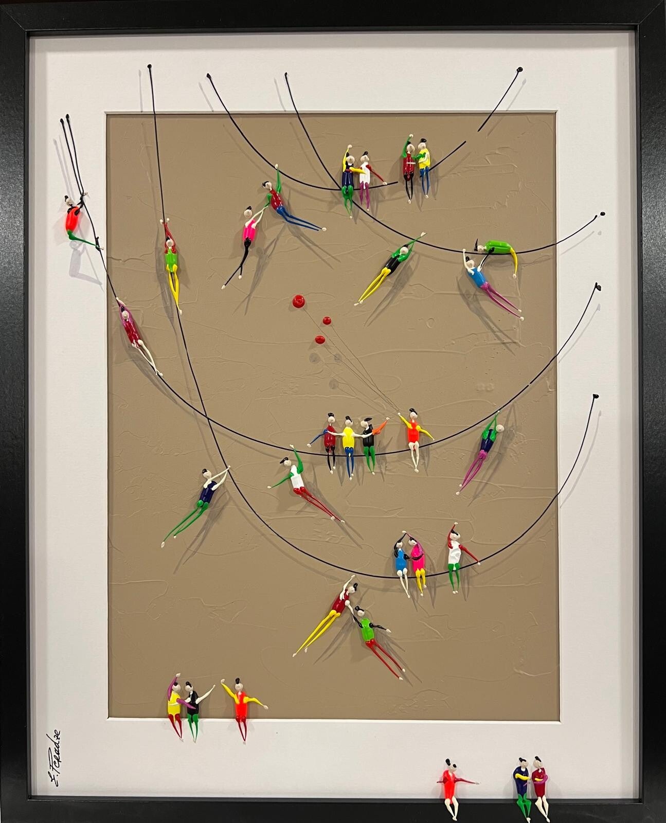 In my work, acrylic paints flow together to form a mesh of surrealism, figurative elements and geometric clarity. The composition is an ode to freedom and the dynamism of life. Every line, every splash of color is carefully placed to create an atmosphere of weightlessness and connection that captures viewers in a web of emotion and reflection. This painting will exude an aura of thoughtfulness and creative energy in your space.