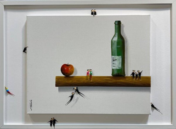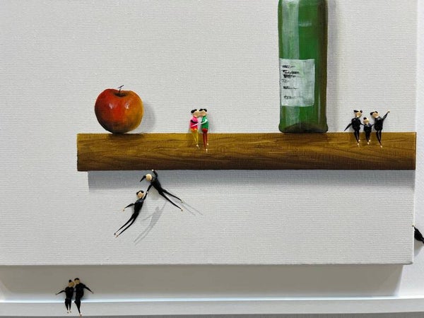 In my work, acrylic paints flow together to form a mesh of surrealism, figurative elements and geometric clarity. The composition is an ode to freedom and the dynamism of life. Every line, every splash of color is carefully placed to create an atmosphere of weightlessness and connection that captures viewers in a web of emotion and reflection. This painting will exude an aura of thoughtfulness and creative energy in your space.