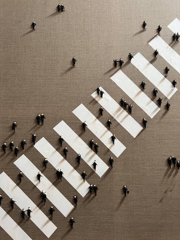 In my work, acrylic paints flow together to form a mesh of surrealism, figurative elements and geometric clarity. The composition is an ode to freedom and the dynamism of life. Every line, every splash of color is carefully placed to create an atmosphere of weightlessness and connection that captures viewers in a web of emotion and reflection. This painting will exude an aura of thoughtfulness and creative energy in your space.