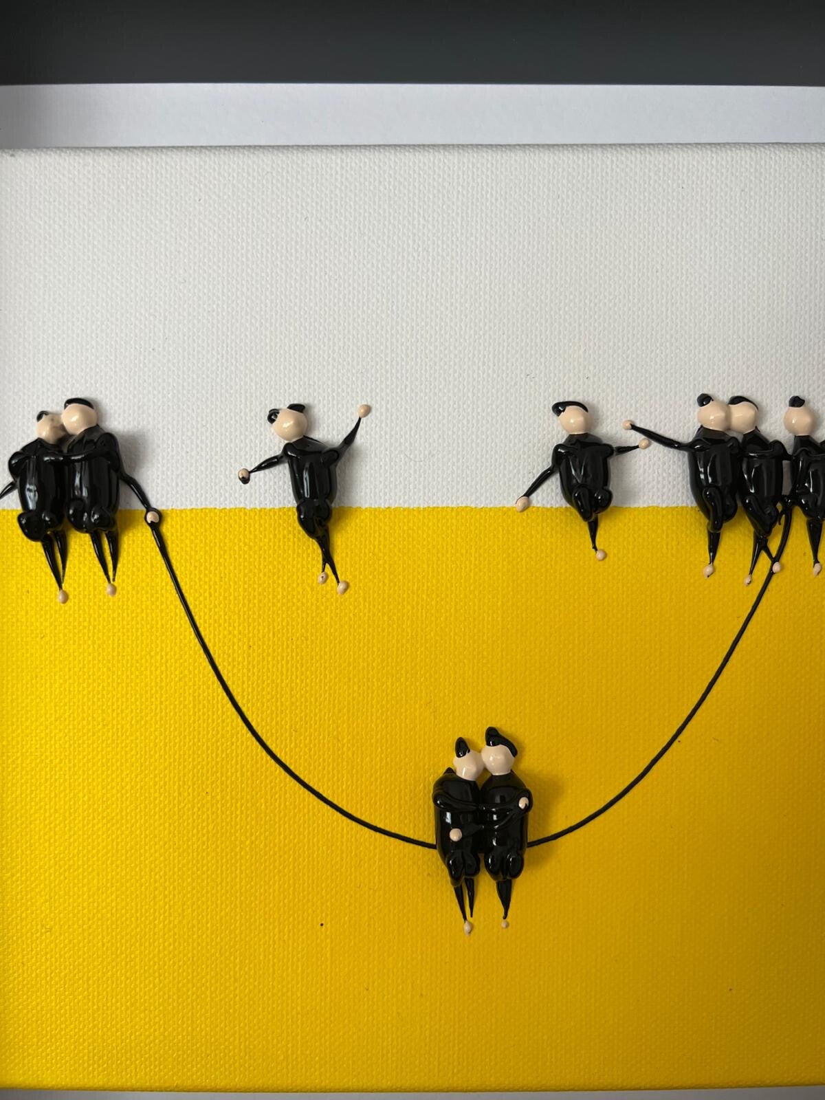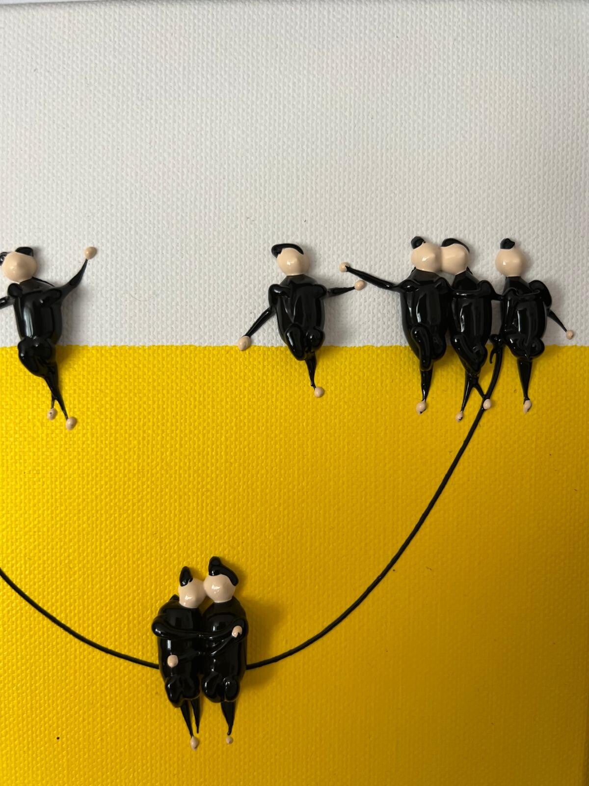 In my work, acrylic paints flow together to form a mesh of surrealism, figurative elements and geometric clarity. The composition is an ode to freedom and the dynamism of life. Every line, every splash of color is carefully placed to create an atmosphere of weightlessness and connection that captures viewers in a web of emotion and reflection. This painting will exude an aura of thoughtfulness and creative energy in your space.
