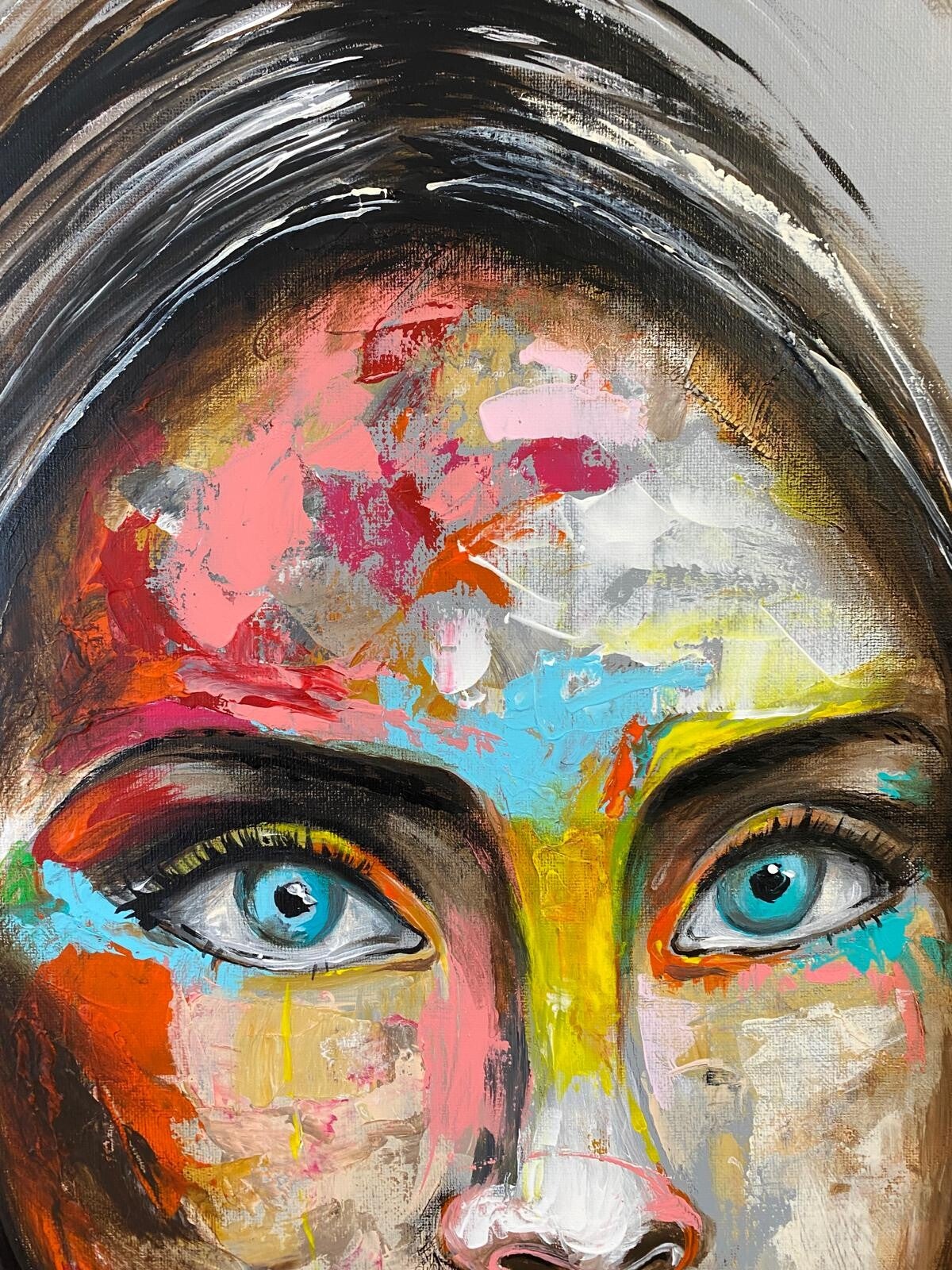 In my work, acrylic paints flow together to form a mesh of surrealism, figurative elements and geometric clarity. The composition is an ode to freedom and the dynamism of life. Every line, every splash of color is carefully placed to create an atmosphere of weightlessness and connection that captures viewers in a web of emotion and reflection. This painting will exude an aura of thoughtfulness and creative energy in your space.