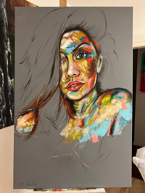 In my work, acrylic paints flow together to form a mesh of surrealism, figurative elements and geometric clarity. The composition is an ode to freedom and the dynamism of life. Every line, every splash of color is carefully placed to create an atmosphere of weightlessness and connection that captures viewers in a web of emotion and reflection. This painting will exude an aura of thoughtfulness and creative energy in your space.