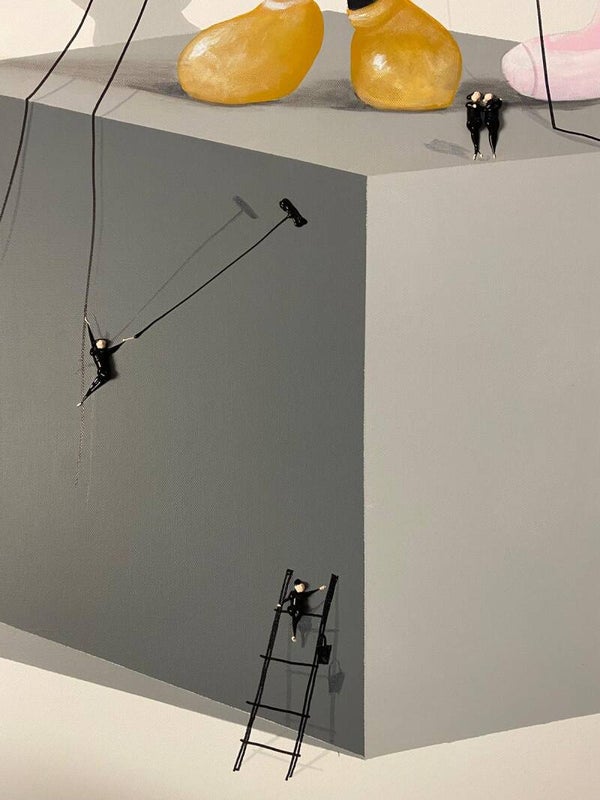 In my work, acrylic paints flow together to form a mesh of surrealism, figurative elements and geometric clarity. The composition is an ode to freedom and the dynamism of life. Every line, every splash of color is carefully placed to create an atmosphere of weightlessness and connection that captures viewers in a web of emotion and reflection. This painting will exude an aura of thoughtfulness and creative energy in your space.