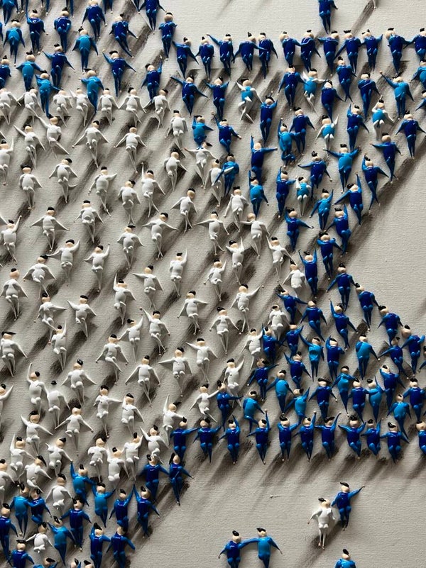 In my work, acrylic paints flow together to form a mesh of surrealism, figurative elements and geometric clarity. The composition is an ode to freedom and the dynamism of life. Every line, every splash of color is carefully placed to create an atmosphere of weightlessness and connection that captures viewers in a web of emotion and reflection. This painting will exude an aura of thoughtfulness and creative energy in your space.