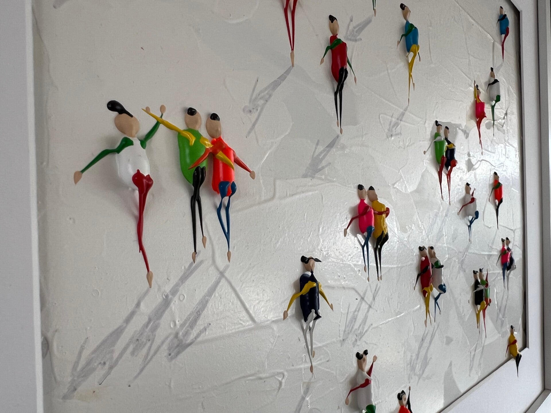 In my work, acrylic paints flow together to form a mesh of surrealism, figurative elements and geometric clarity. The composition is an ode to freedom and the dynamism of life. Every line, every splash of color is carefully placed to create an atmosphere of weightlessness and connection that captures viewers in a web of emotion and reflection. This painting will exude an aura of thoughtfulness and creative energy in your space.