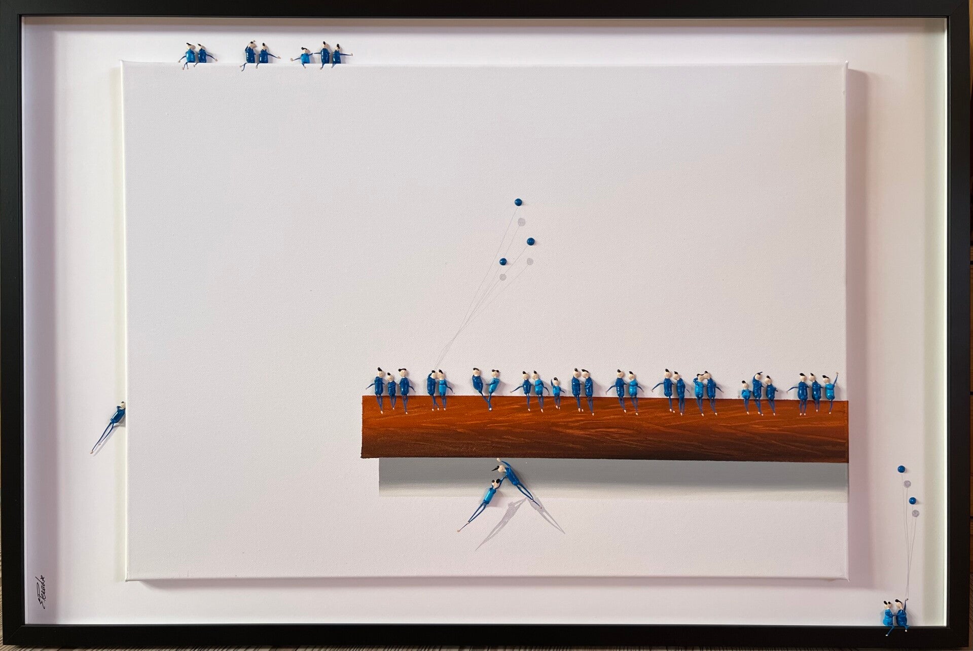 In my work, acrylic paints flow together to form a mesh of surrealism, figurative elements and geometric clarity. The composition is an ode to freedom and the dynamism of life. Every line, every splash of color is carefully placed to create an atmosphere of weightlessness and connection that captures viewers in a web of emotion and reflection. This painting will exude an aura of thoughtfulness and creative energy in your space.