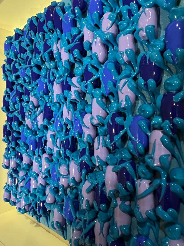 In my work, acrylic paints flow together to form a mesh of surrealism, figurative elements and geometric clarity. The composition is an ode to freedom and the dynamism of life. Every line, every splash of color is carefully placed to create an atmosphere of weightlessness and connection that captures viewers in a web of emotion and reflection. This painting will exude an aura of thoughtfulness and creative energy in your space.