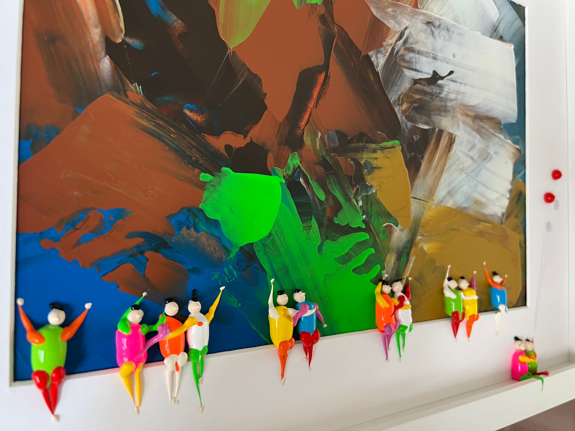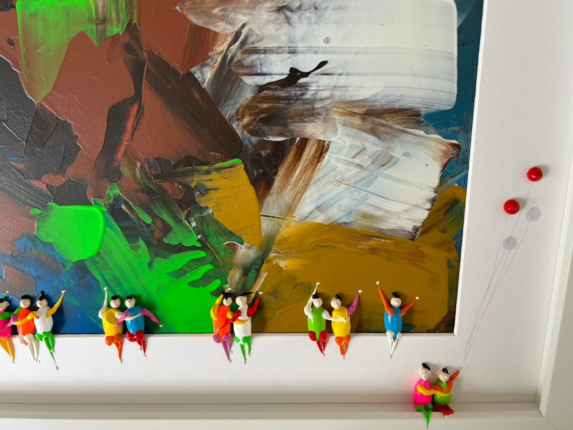 In my work, acrylic paints flow together to form a mesh of surrealism, figurative elements and geometric clarity. The composition is an ode to freedom and the dynamism of life. Every line, every splash of color is carefully placed to create an atmosphere of weightlessness and connection that captures viewers in a web of emotion and reflection. This painting will exude an aura of thoughtfulness and creative energy in your space.