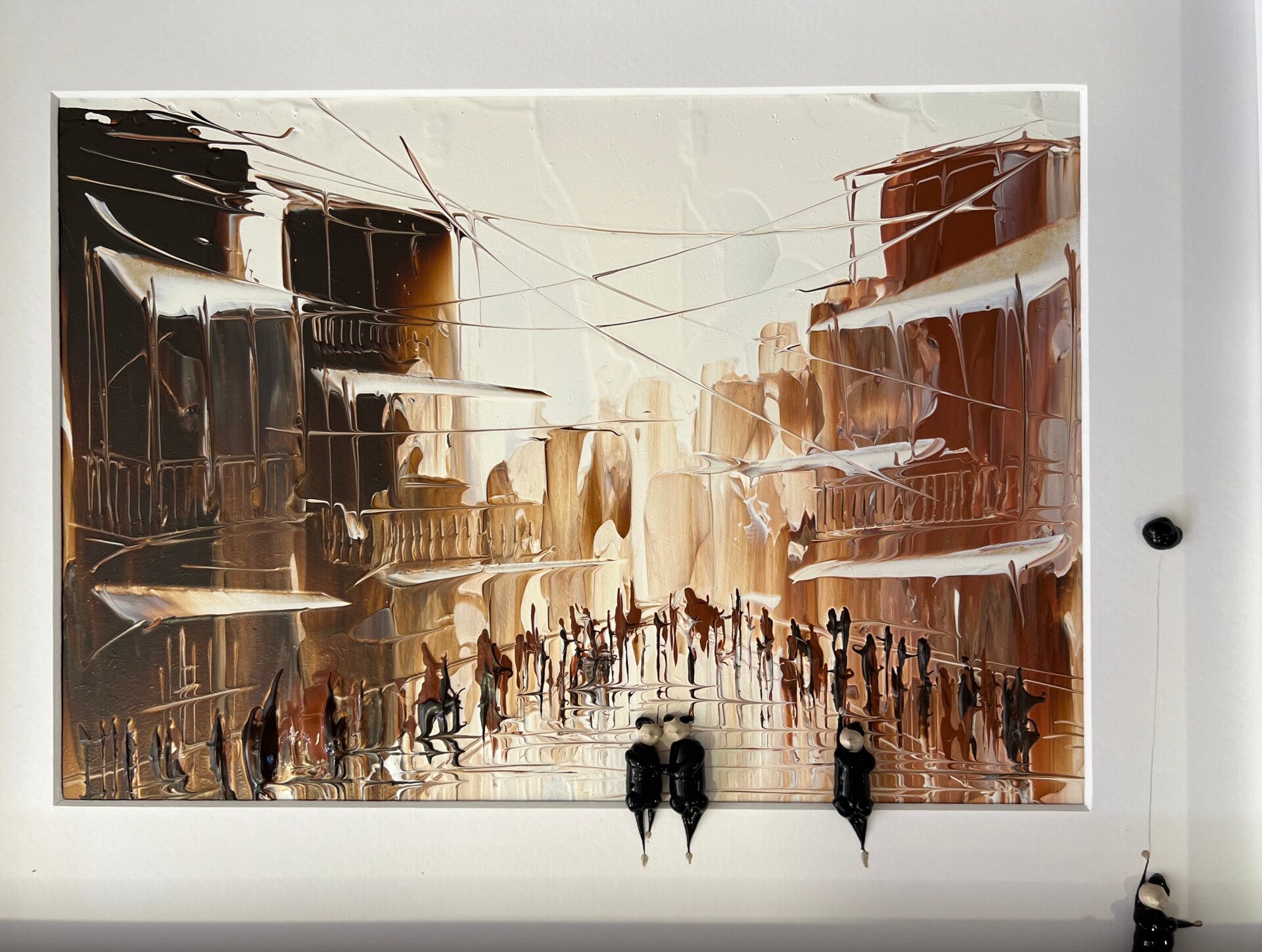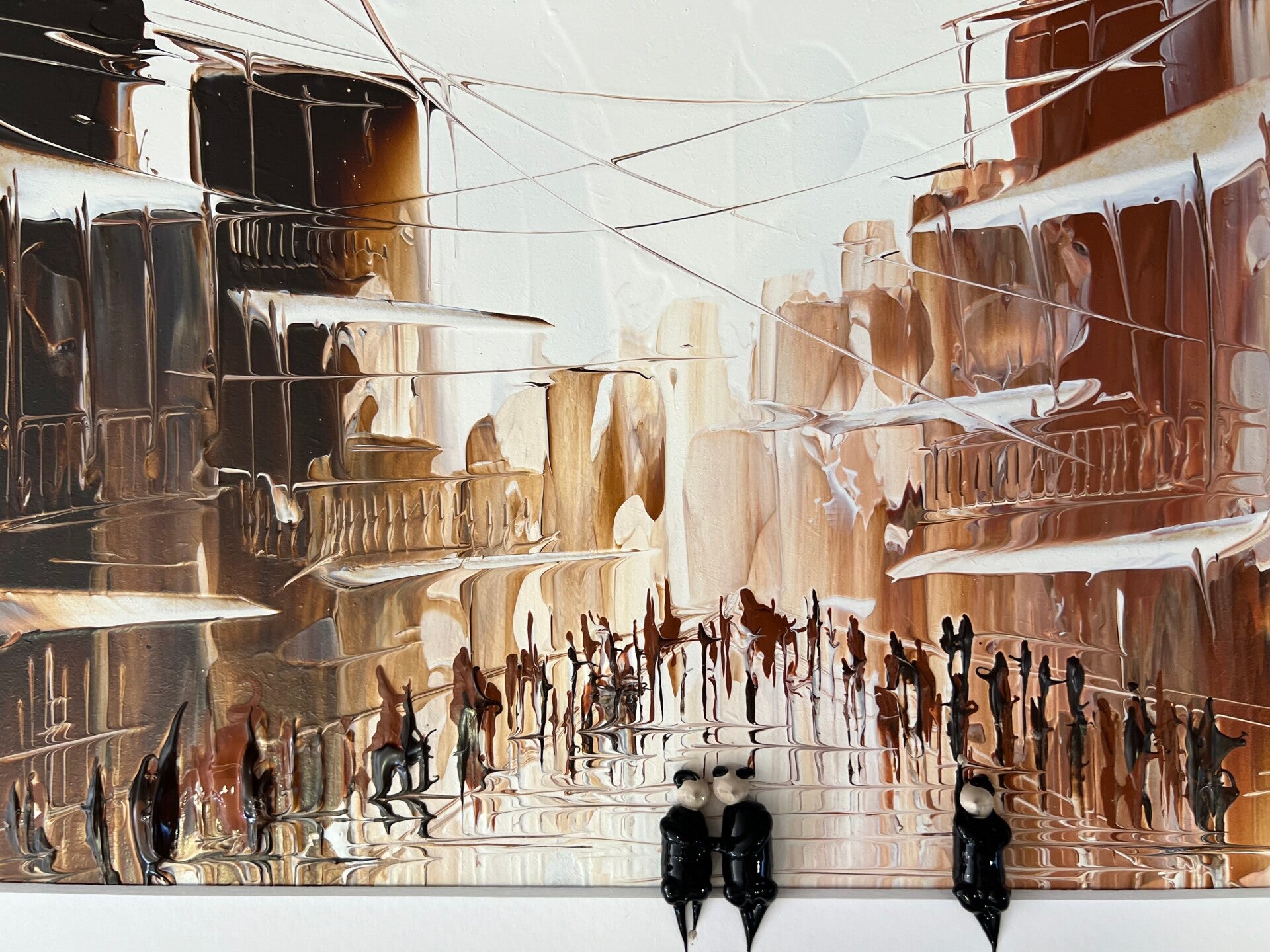 In my work, acrylic paints flow together to form a mesh of surrealism, figurative elements and geometric clarity. The composition is an ode to freedom and the dynamism of life. Every line, every splash of color is carefully placed to create an atmosphere of weightlessness and connection that captures viewers in a web of emotion and reflection. This painting will exude an aura of thoughtfulness and creative energy in your space.