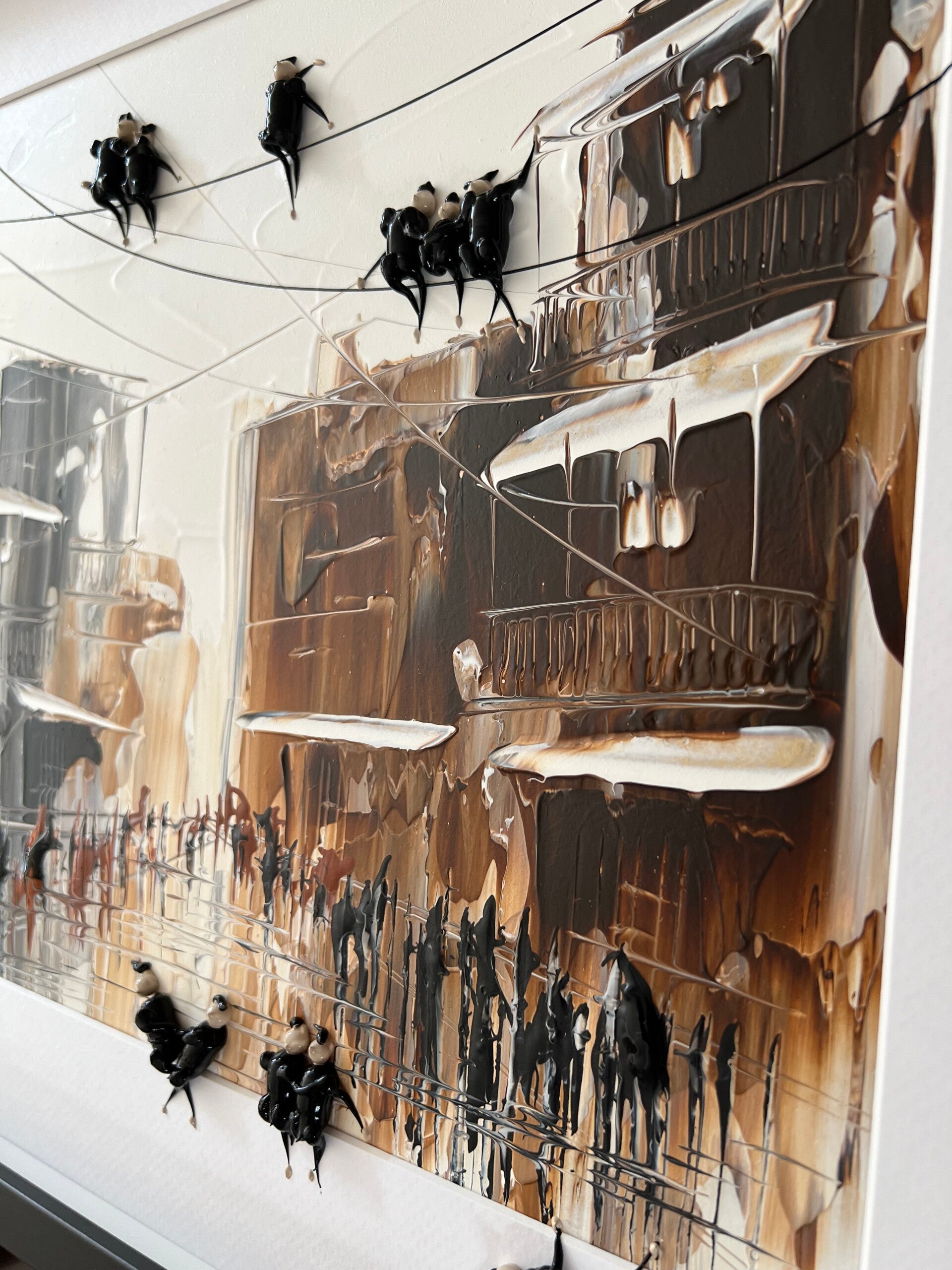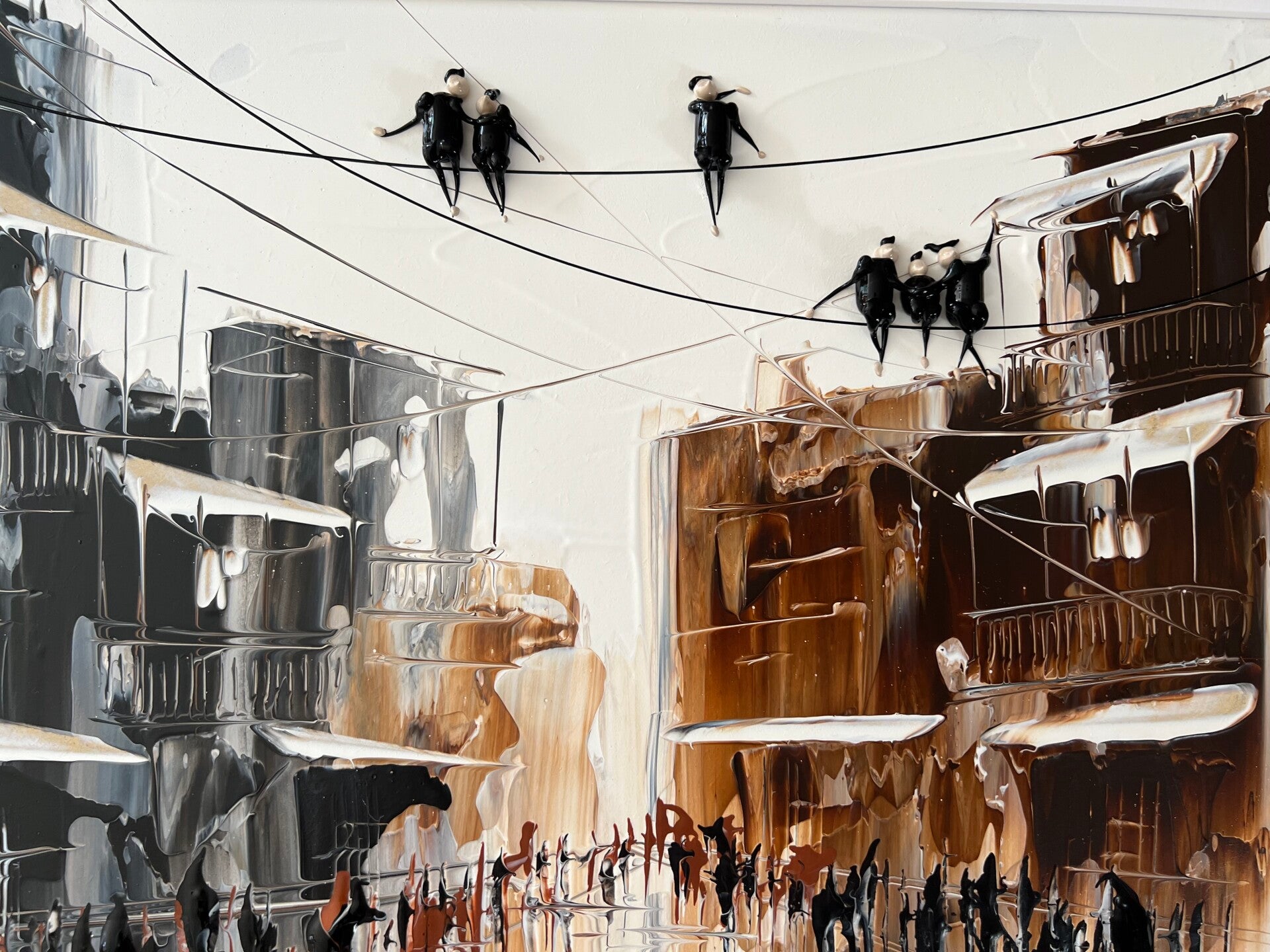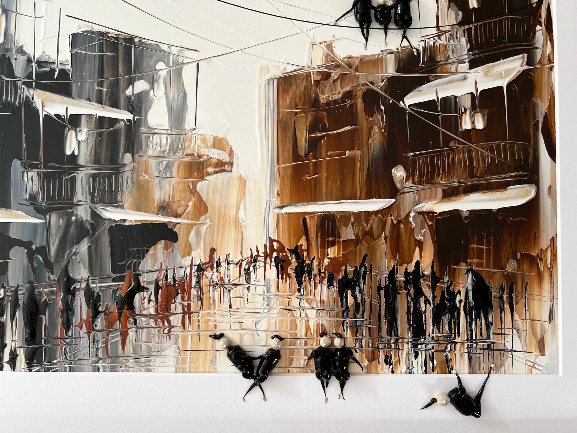 In my work, acrylic paints flow together to form a mesh of surrealism, figurative elements and geometric clarity. The composition is an ode to freedom and the dynamism of life. Every line, every splash of color is carefully placed to create an atmosphere of weightlessness and connection that captures viewers in a web of emotion and reflection. This painting will exude an aura of thoughtfulness and creative energy in your space.