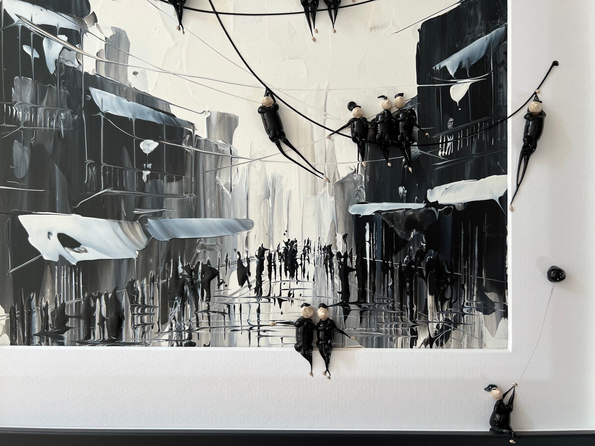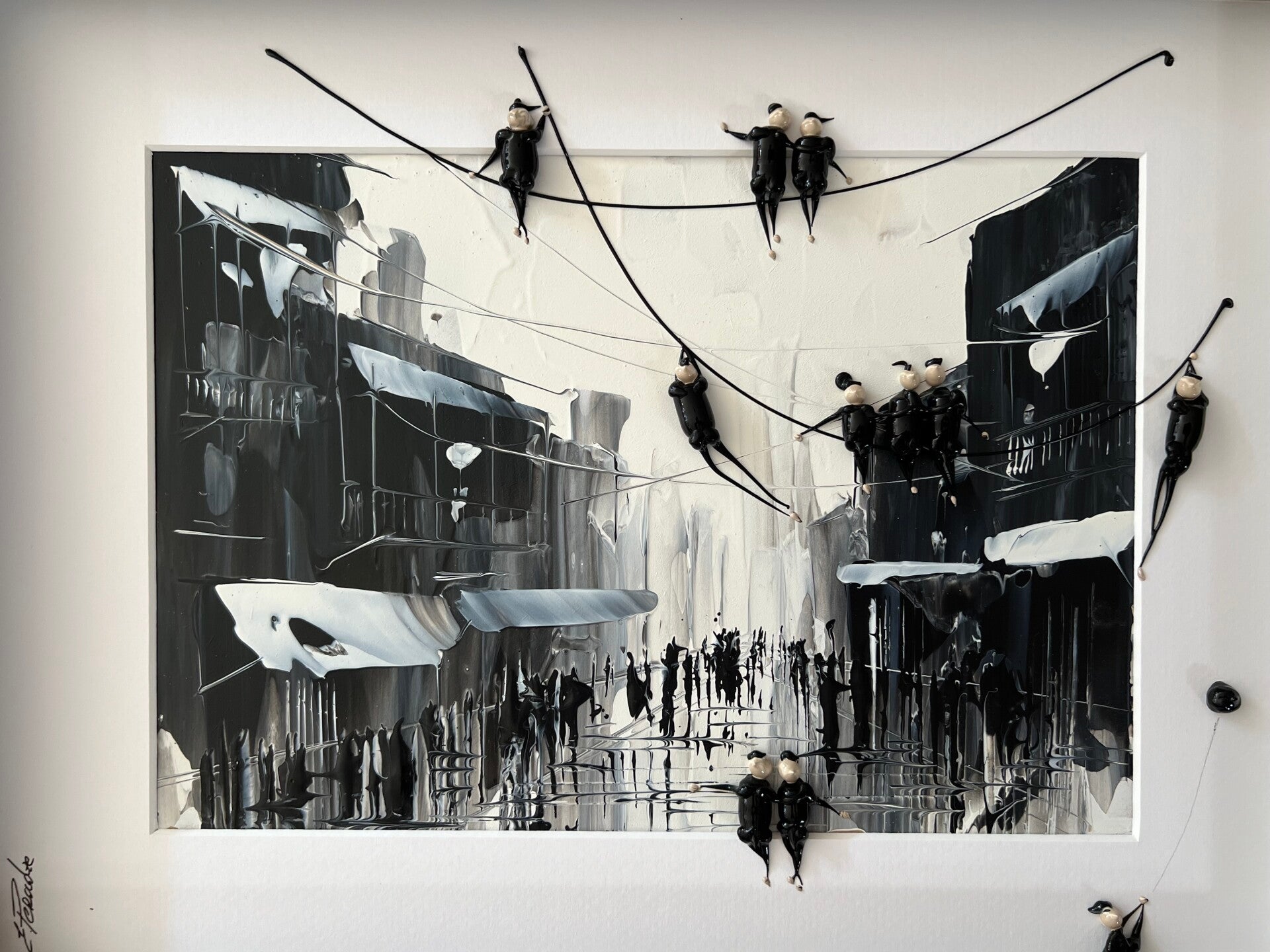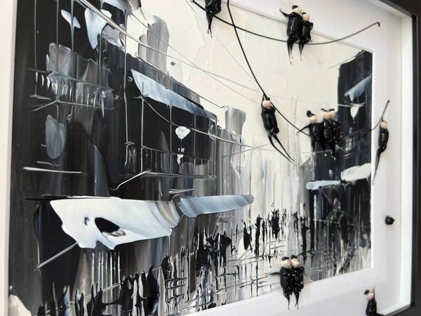 In my work, acrylic paints flow together to form a mesh of surrealism, figurative elements and geometric clarity. The composition is an ode to freedom and the dynamism of life. Every line, every splash of color is carefully placed to create an atmosphere of weightlessness and connection that captures viewers in a web of emotion and reflection. This painting will exude an aura of thoughtfulness and creative energy in your space.