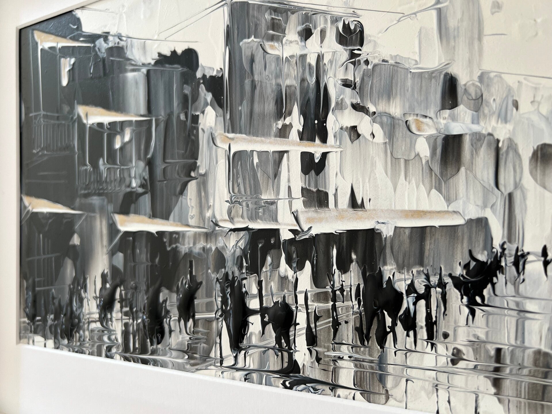In my work, acrylic paints flow together to form a mesh of surrealism, figurative elements and geometric clarity. The composition is an ode to freedom and the dynamism of life. Every line, every splash of color is carefully placed to create an atmosphere of weightlessness and connection that captures viewers in a web of emotion and reflection. This painting will exude an aura of thoughtfulness and creative energy in your space.
