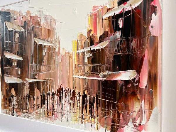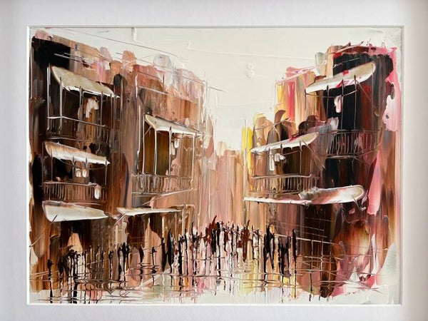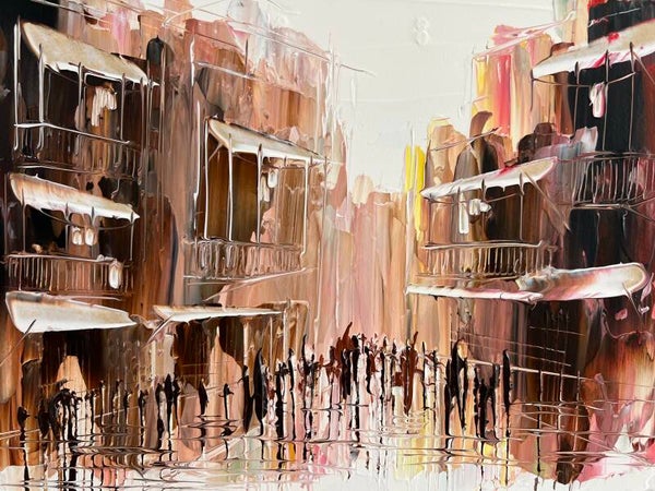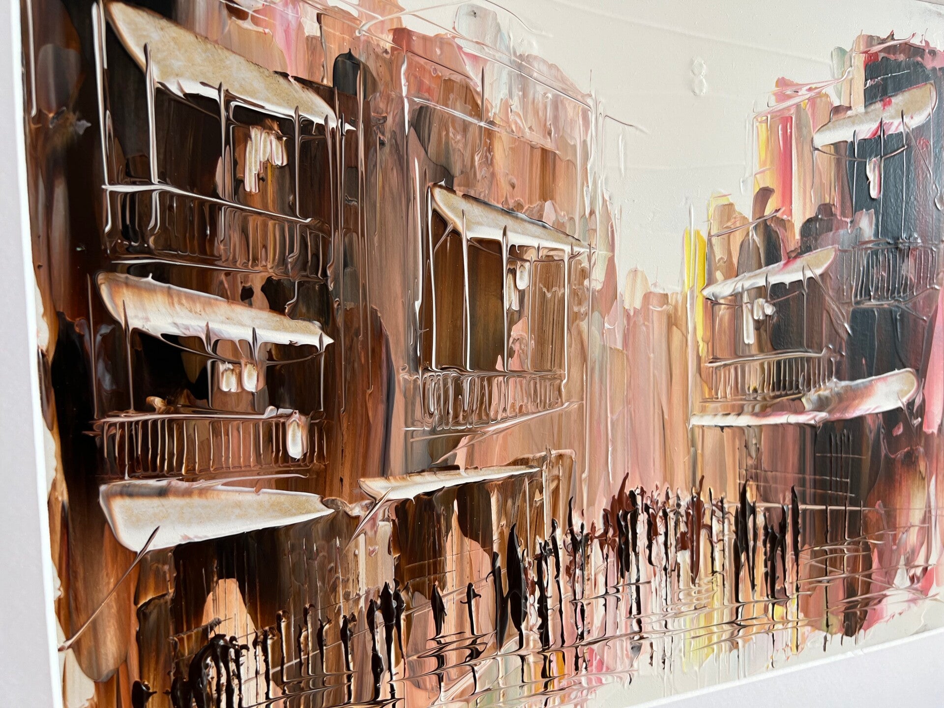 In my work, acrylic paints flow together to form a mesh of surrealism, figurative elements and geometric clarity. The composition is an ode to freedom and the dynamism of life. Every line, every splash of color is carefully placed to create an atmosphere of weightlessness and connection that captures viewers in a web of emotion and reflection. This painting will exude an aura of thoughtfulness and creative energy in your space.