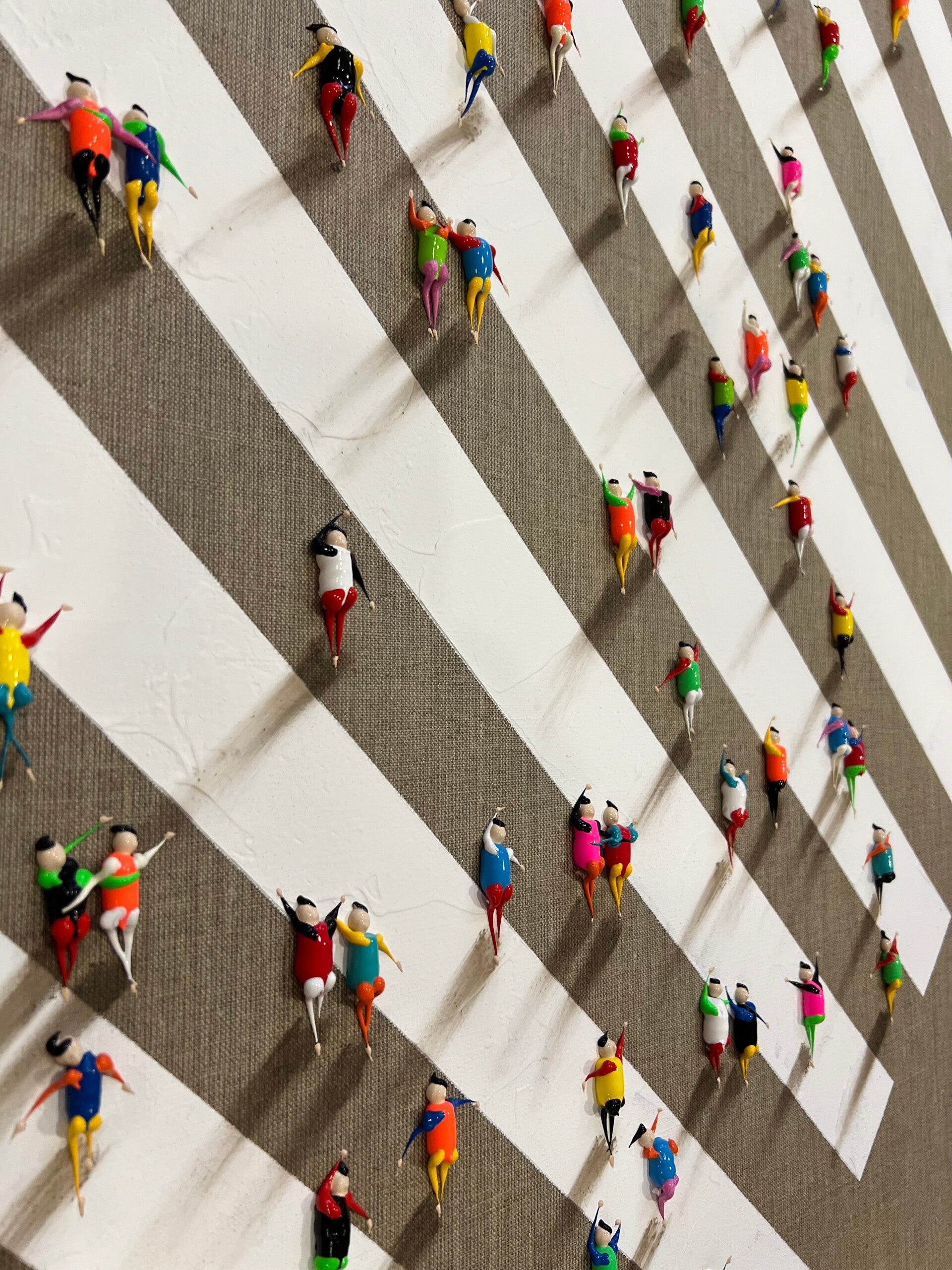 In my work, acrylic paints flow together to form a mesh of surrealism, figurative elements and geometric clarity. The composition is an ode to freedom and the dynamism of life. Every line, every splash of color is carefully placed to create an atmosphere of weightlessness and connection that captures viewers in a web of emotion and reflection. This painting will exude an aura of thoughtfulness and creative energy in your space.