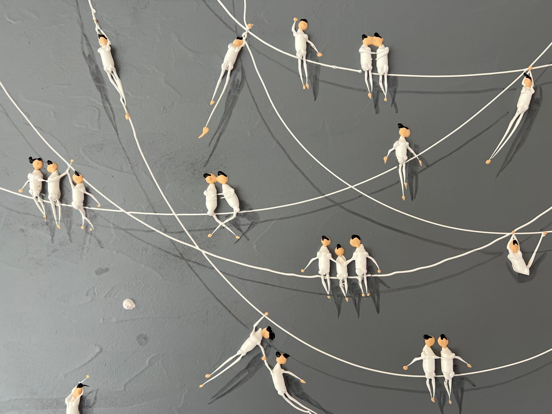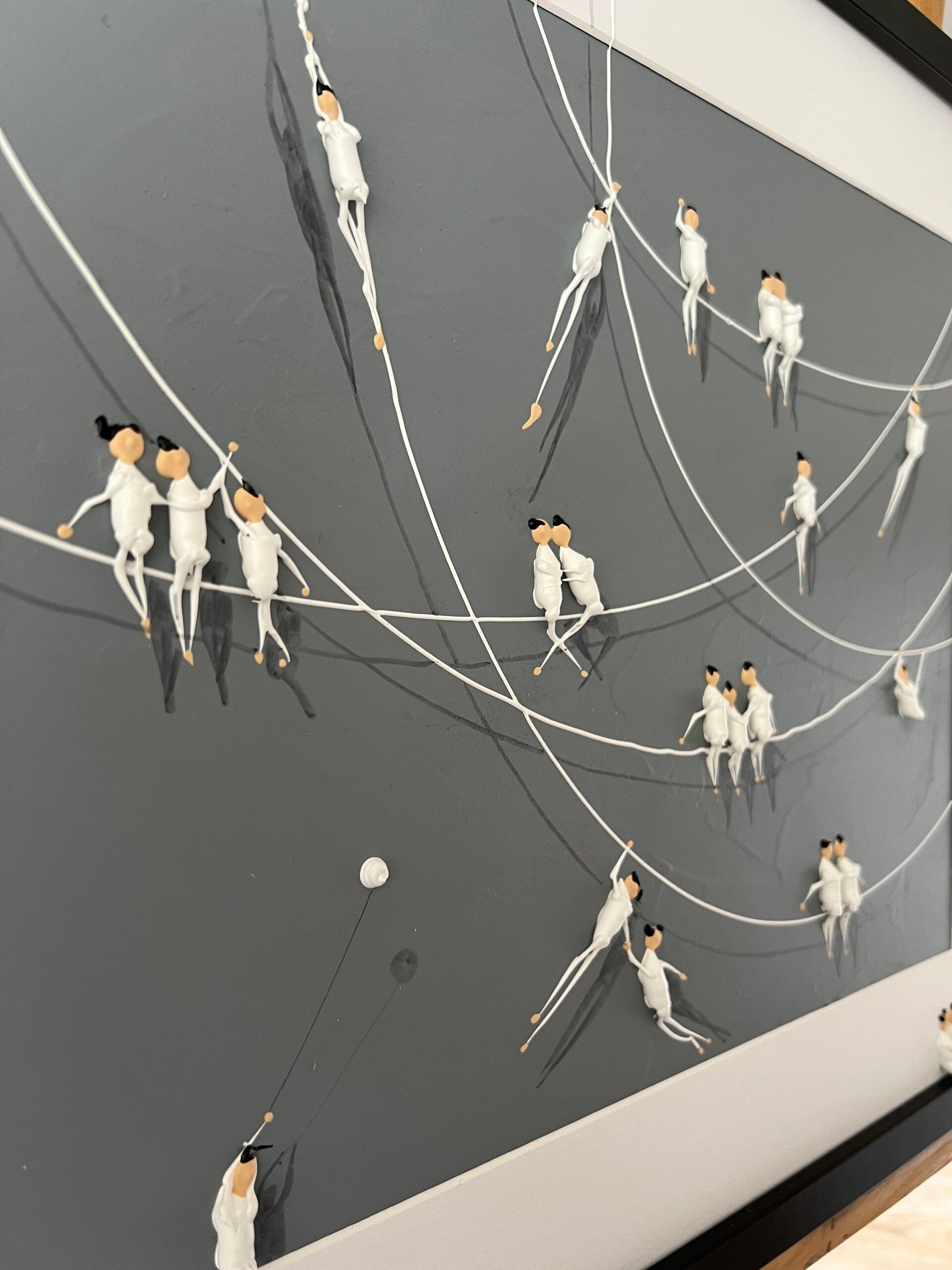 In my work, acrylic paints flow together to form a mesh of surrealism, figurative elements and geometric clarity. The composition is an ode to freedom and the dynamism of life. Every line, every splash of color is carefully placed to create an atmosphere of weightlessness and connection that captures viewers in a web of emotion and reflection. This painting will exude an aura of thoughtfulness and creative energy in your space.