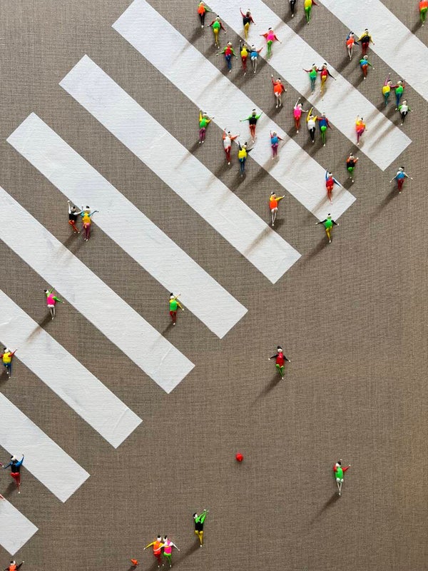 In my work, acrylic paints flow together to form a mesh of surrealism, figurative elements and geometric clarity. The composition is an ode to freedom and the dynamism of life. Every line, every splash of color is carefully placed to create an atmosphere of weightlessness and connection that captures viewers in a web of emotion and reflection. This painting will exude an aura of thoughtfulness and creative energy in your space.