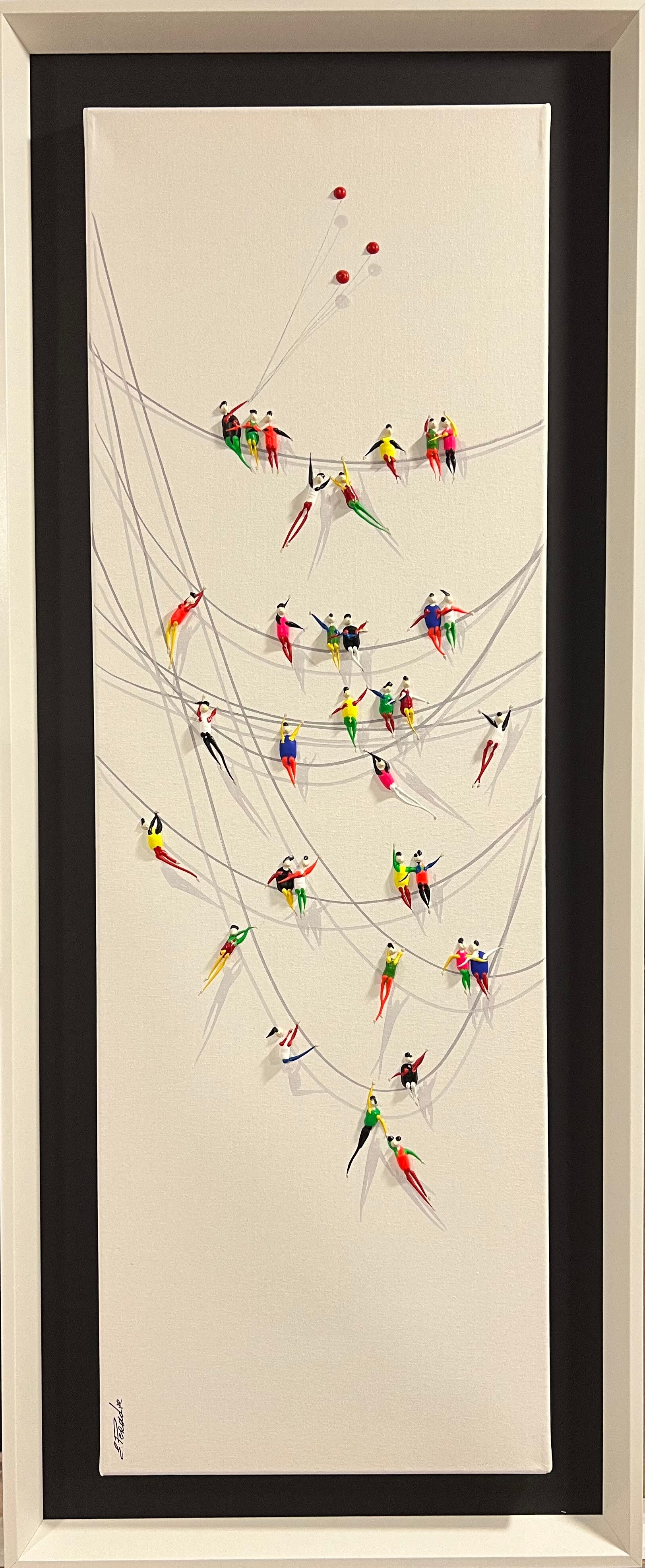In my work, acrylic paints flow together to form a mesh of surrealism, figurative elements and geometric clarity. The composition is an ode to freedom and the dynamism of life. Every line, every splash of color is carefully placed to create an atmosphere of weightlessness and connection that captures viewers in a web of emotion and reflection. This painting will exude an aura of thoughtfulness and creative energy in your space.