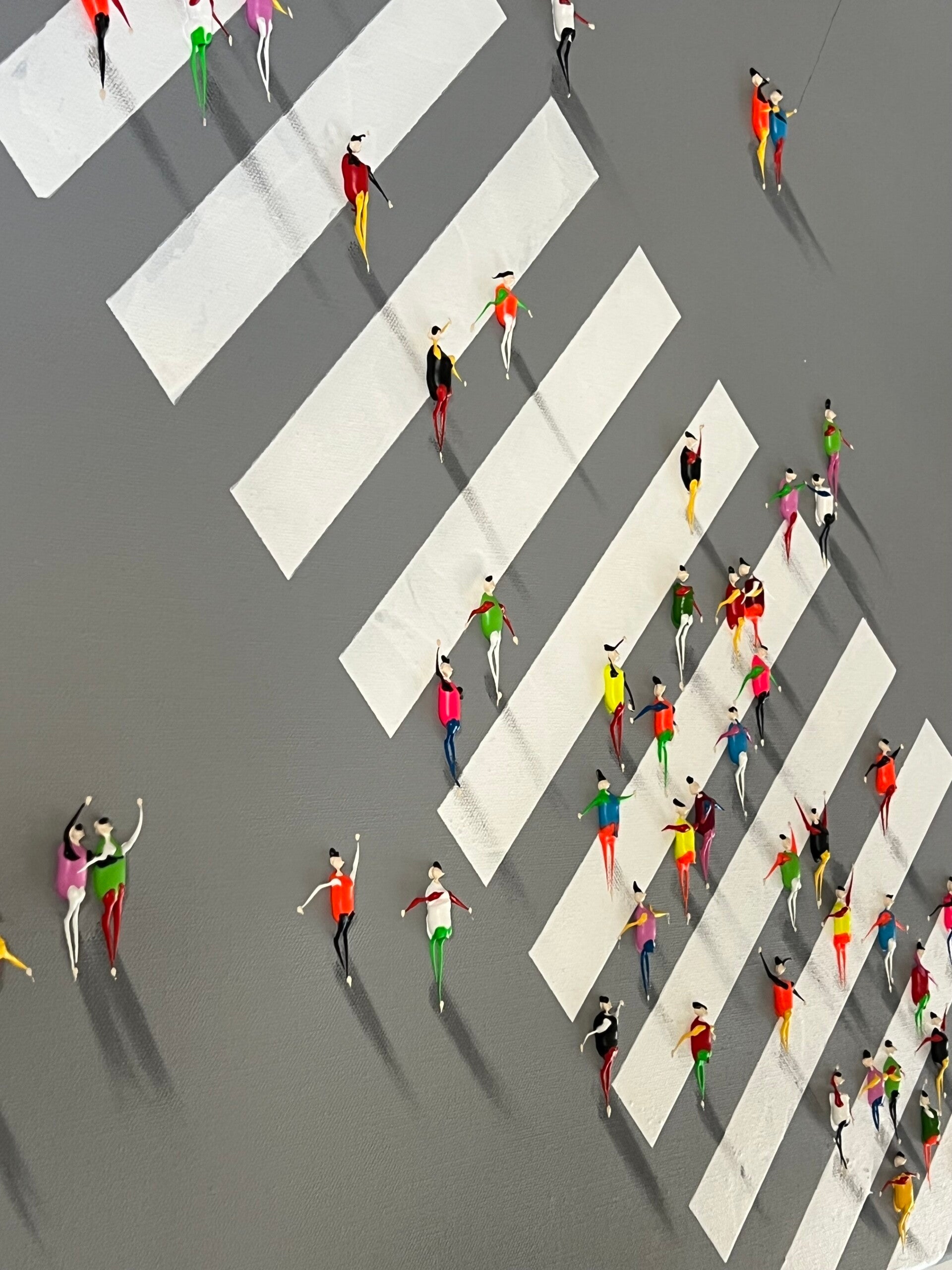 In my work, acrylic paints flow together to form a mesh of surrealism, figurative elements and geometric clarity. The composition is an ode to freedom and the dynamism of life. Every line, every splash of color is carefully placed to create an atmosphere of weightlessness and connection that captures viewers in a web of emotion and reflection. This painting will exude an aura of thoughtfulness and creative energy in your space.