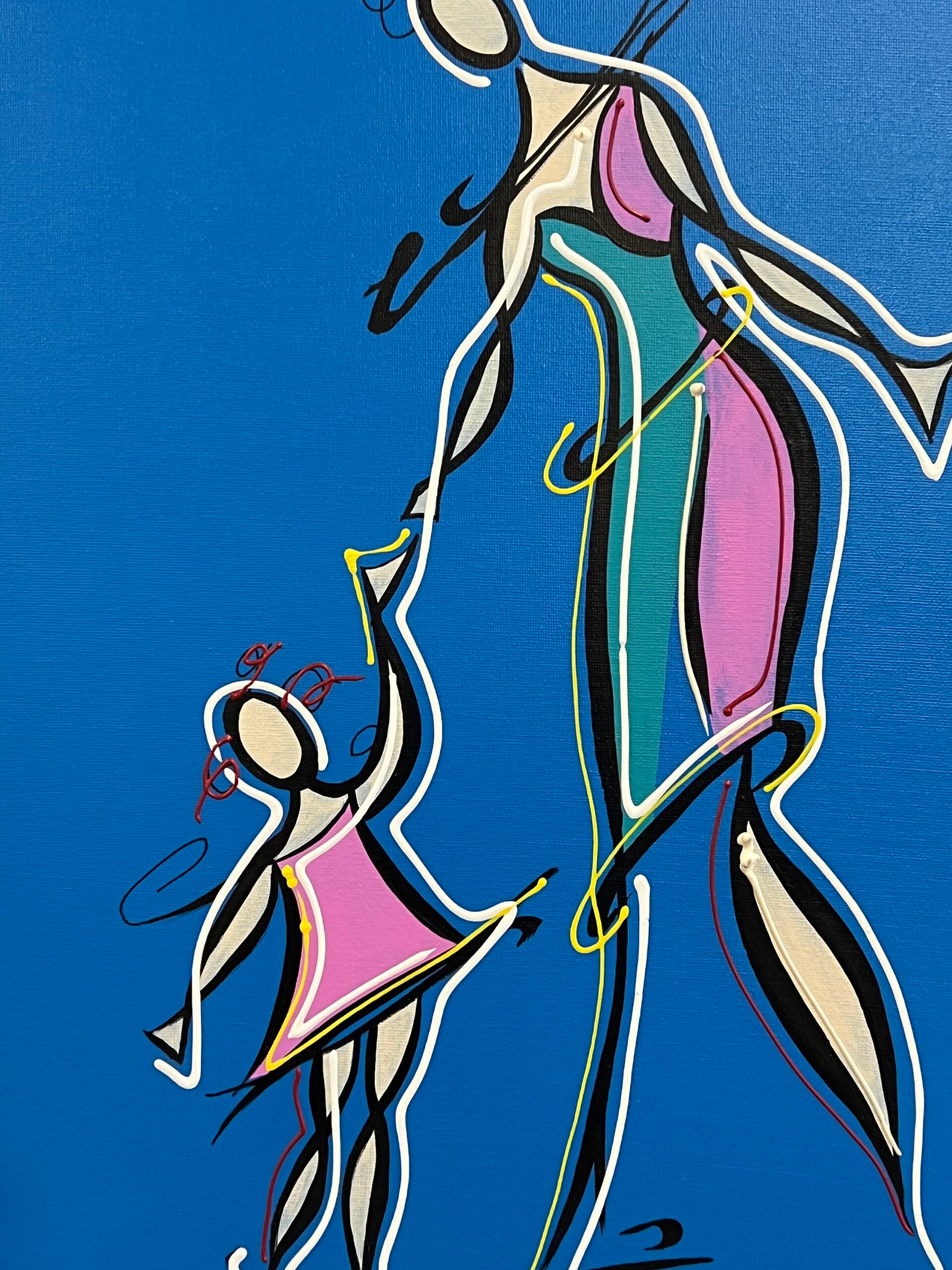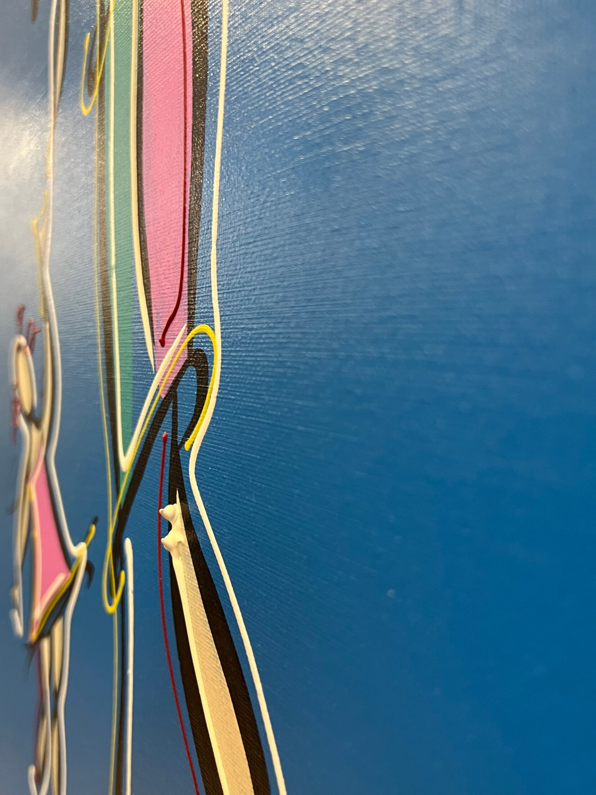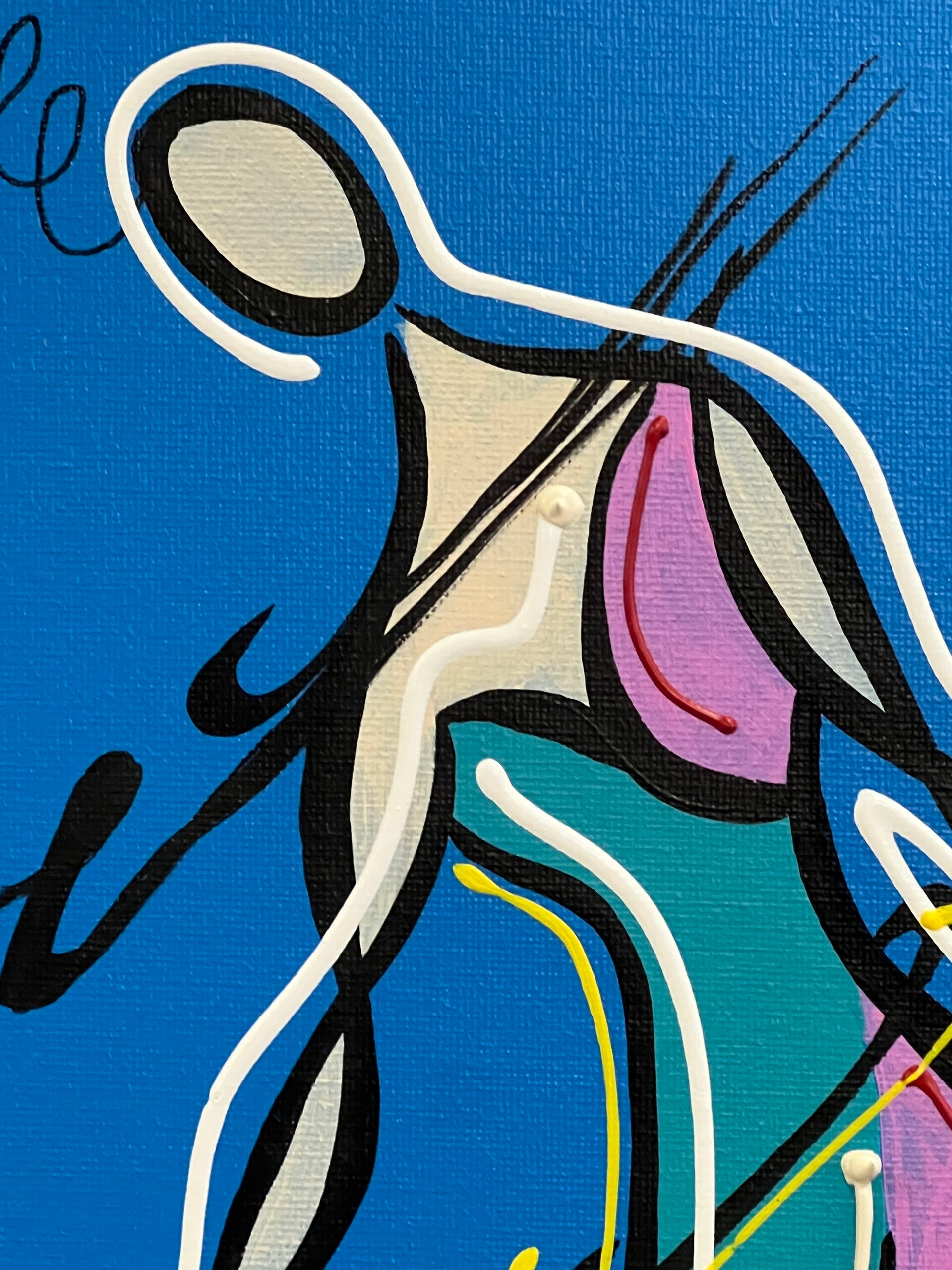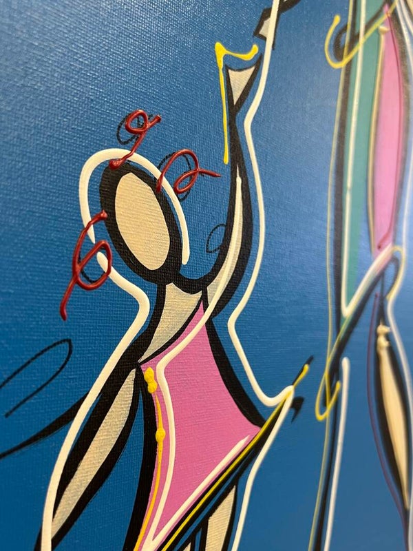 In my work, acrylic paints flow together to form a mesh of surrealism, figurative elements and geometric clarity. The composition is an ode to freedom and the dynamism of life. Every line, every splash of color is carefully placed to create an atmosphere of weightlessness and connection that captures viewers in a web of emotion and reflection. This painting will exude an aura of thoughtfulness and creative energy in your space.