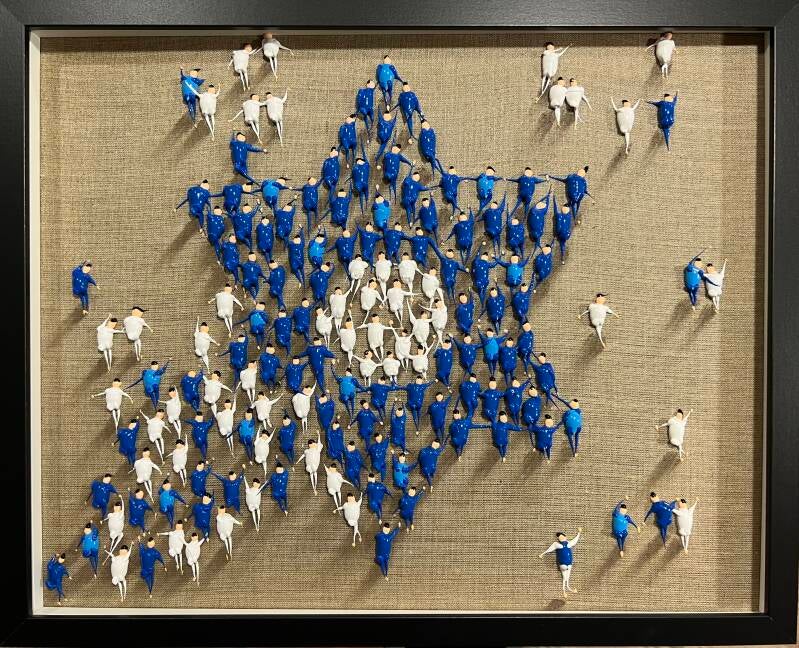 In my work, acrylic paints flow together to form a mesh of surrealism, figurative elements and geometric clarity. The composition is an ode to freedom and the dynamism of life. Every line, every splash of color is carefully placed to create an atmosphere of weightlessness and connection that captures viewers in a web of emotion and reflection. This painting will exude an aura of thoughtfulness and creative energy in your space.