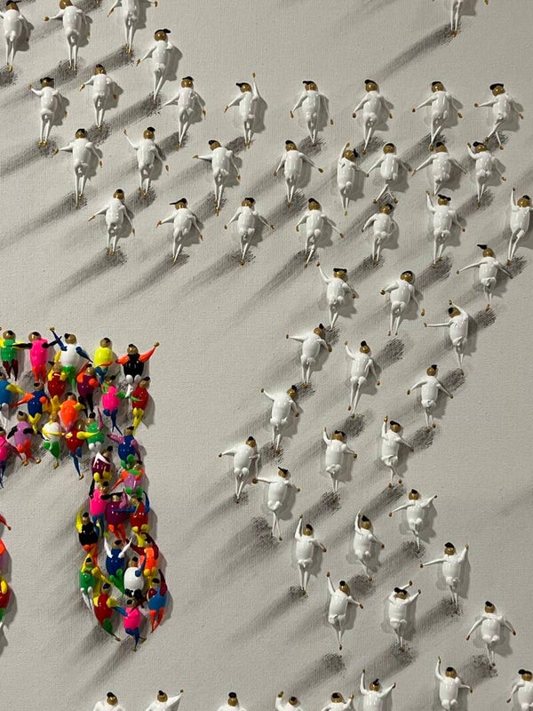 In my work, acrylic paints flow together to form a mesh of surrealism, figurative elements and geometric clarity. The composition is an ode to freedom and the dynamism of life. Every line, every splash of color is carefully placed to create an atmosphere of weightlessness and connection that captures viewers in a web of emotion and reflection. This painting will exude an aura of thoughtfulness and creative energy in your space.