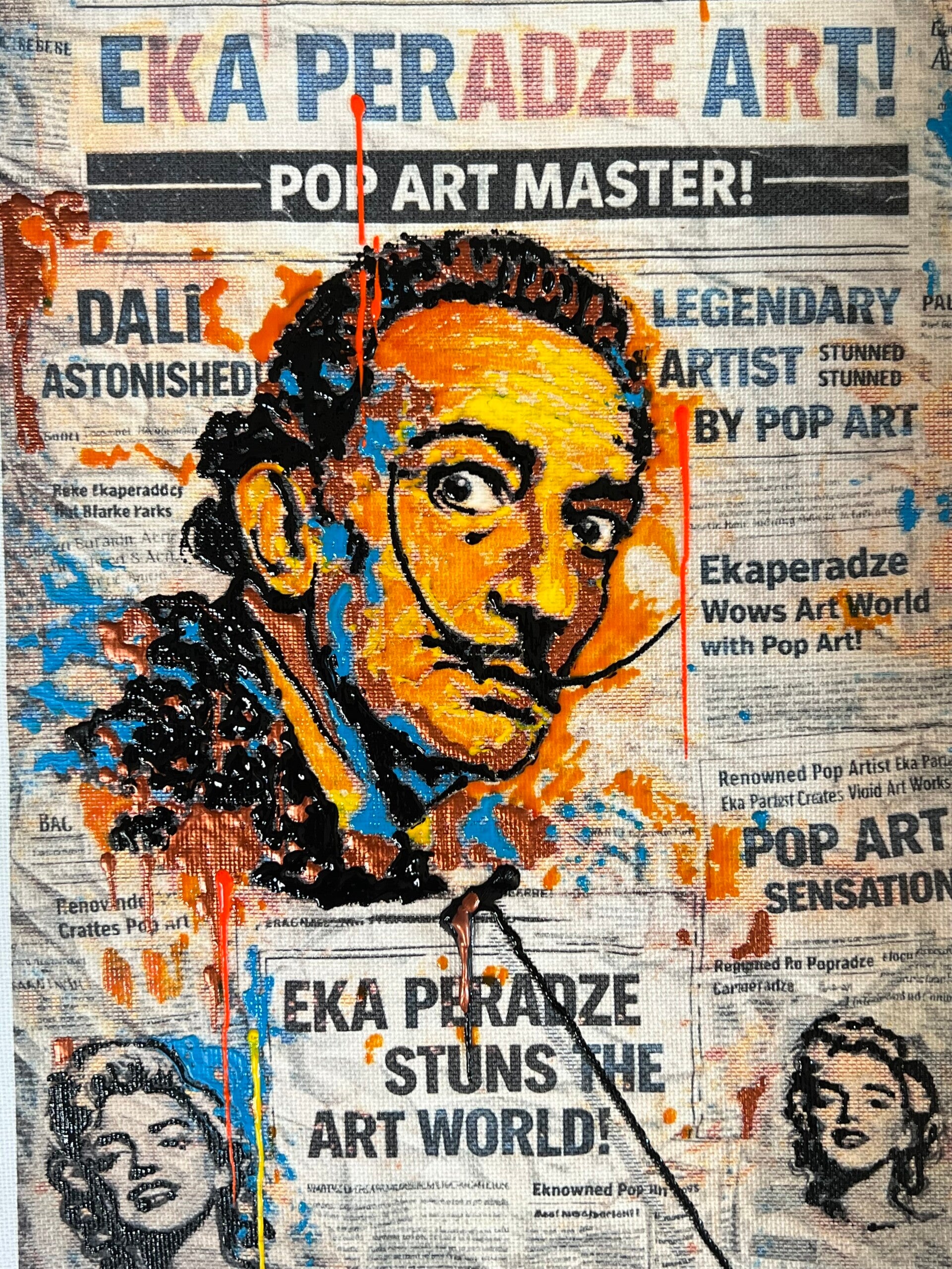 Inspired by Salvador Dali, I combine a structured, iconic portrait with expressive drips and sculptural elements. The tension between control and chaos creates movement and emotion — a key element of my artistic language.